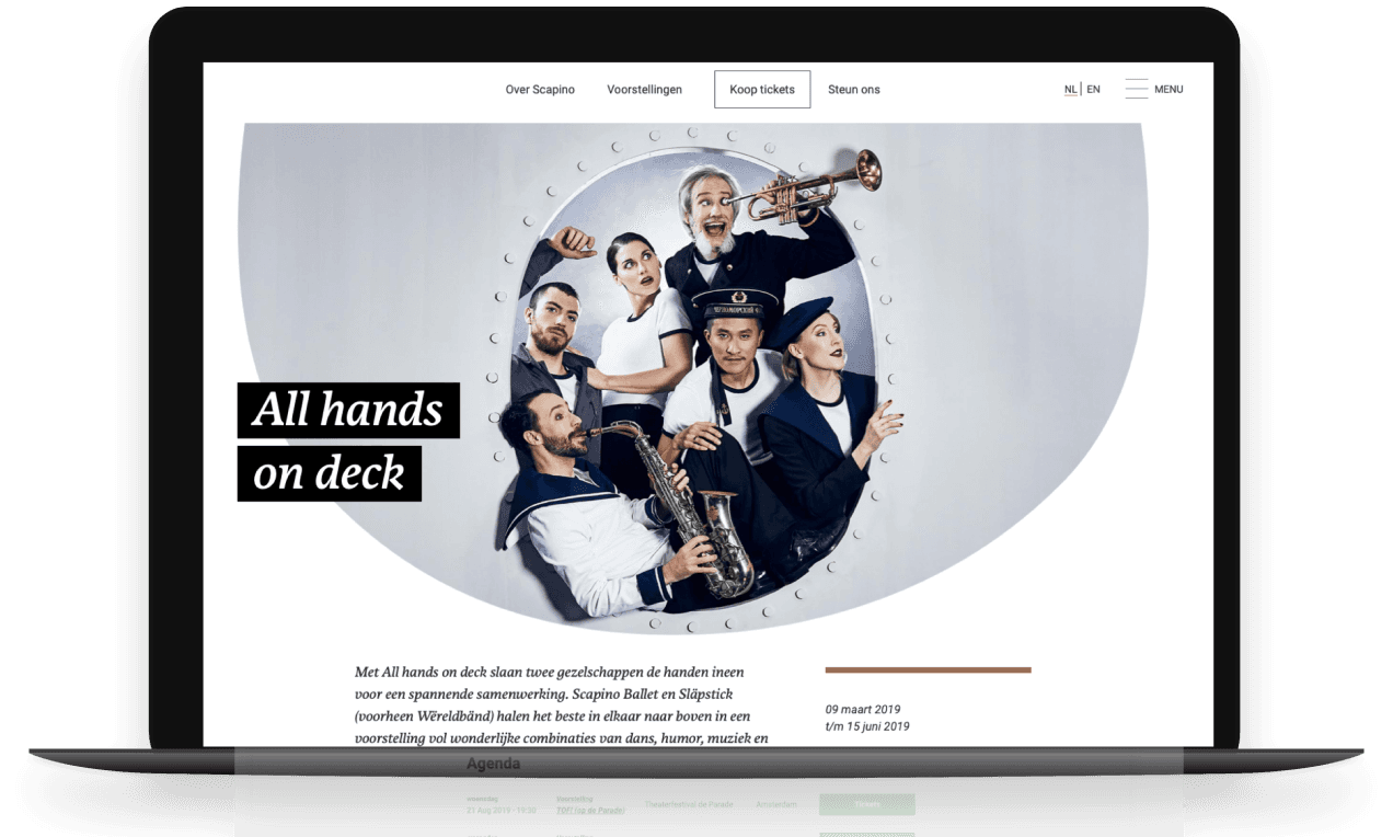 Drupal development voor Scapino Ballet, back-end, front-end, Webdesign, Mollie en Active Campaign implementatie